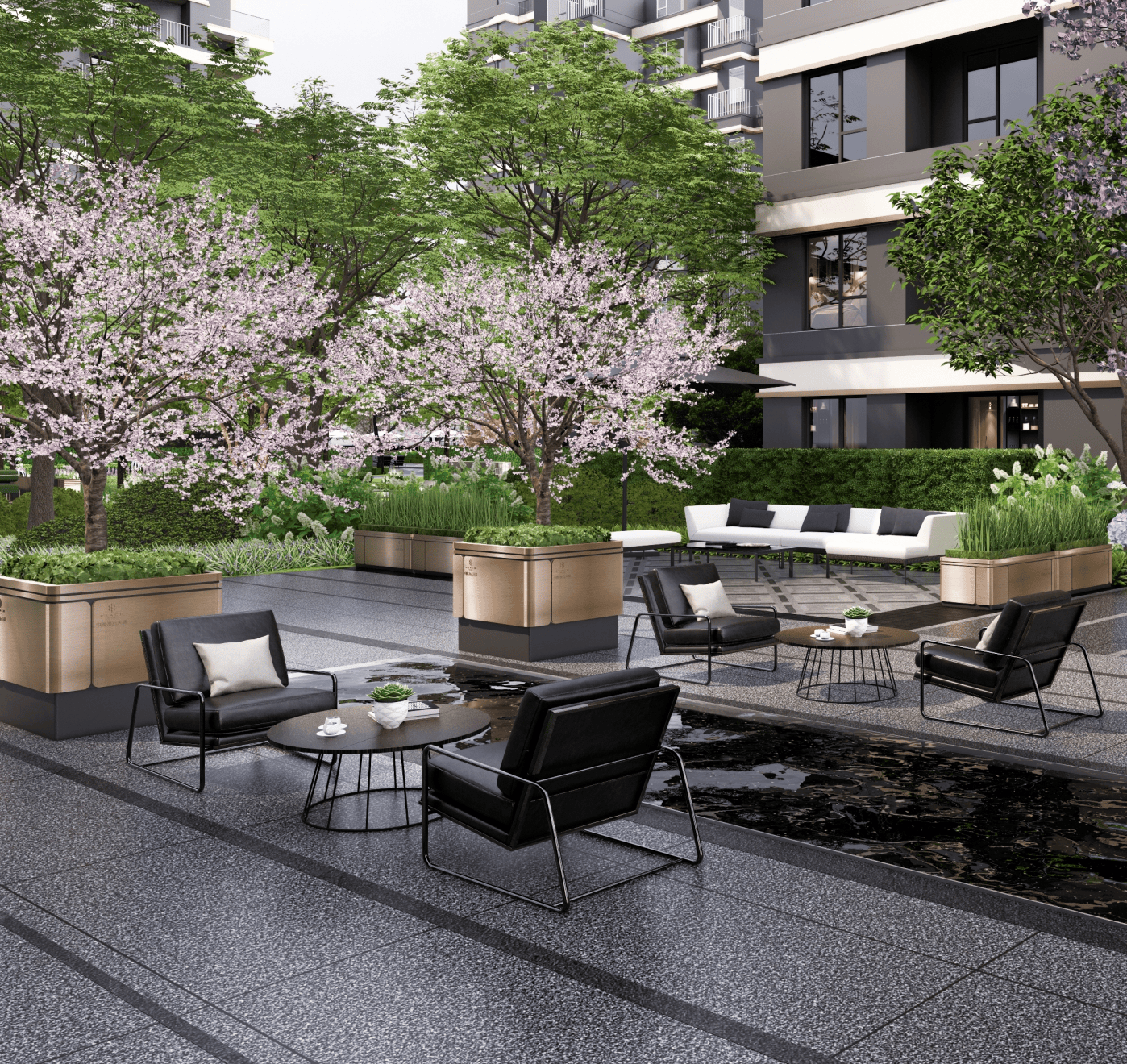 园林规划传承古长安外市内坊款式,容积率仅为2.79。从保守“LDK”到“LDKG”再到 “LDKBG”(即客堂、餐厅、厨房、阳台、天井一体化),已为中国一、二线城市近一半地王项目供给设想办事,